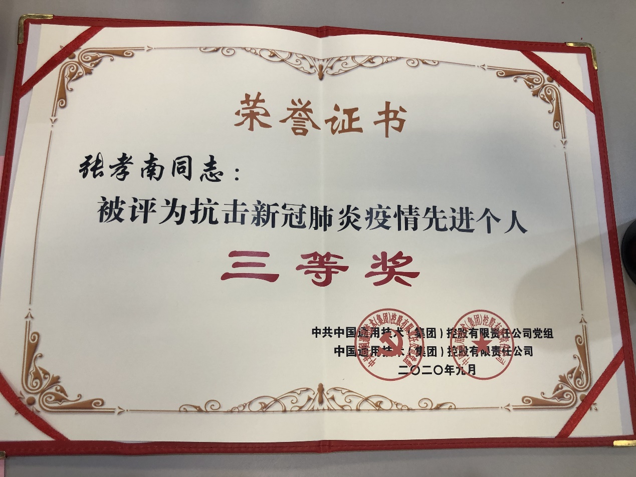 &nbsp;&nbsp;總經理張孝南、副總經理劉東生榮獲通用技術集團 &nbsp;&nbsp;抗擊新冠肺炎疫情先進個人 &nbsp;&nbsp;9月18日上午,中國通用技術(集團)控股有限責任公司召開抗擊新冠肺炎疫情表彰大會,對集團